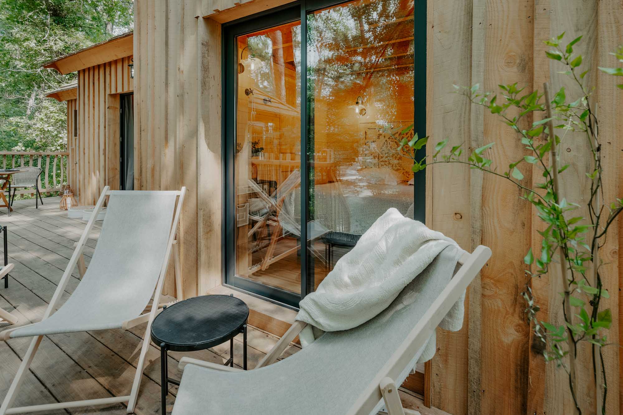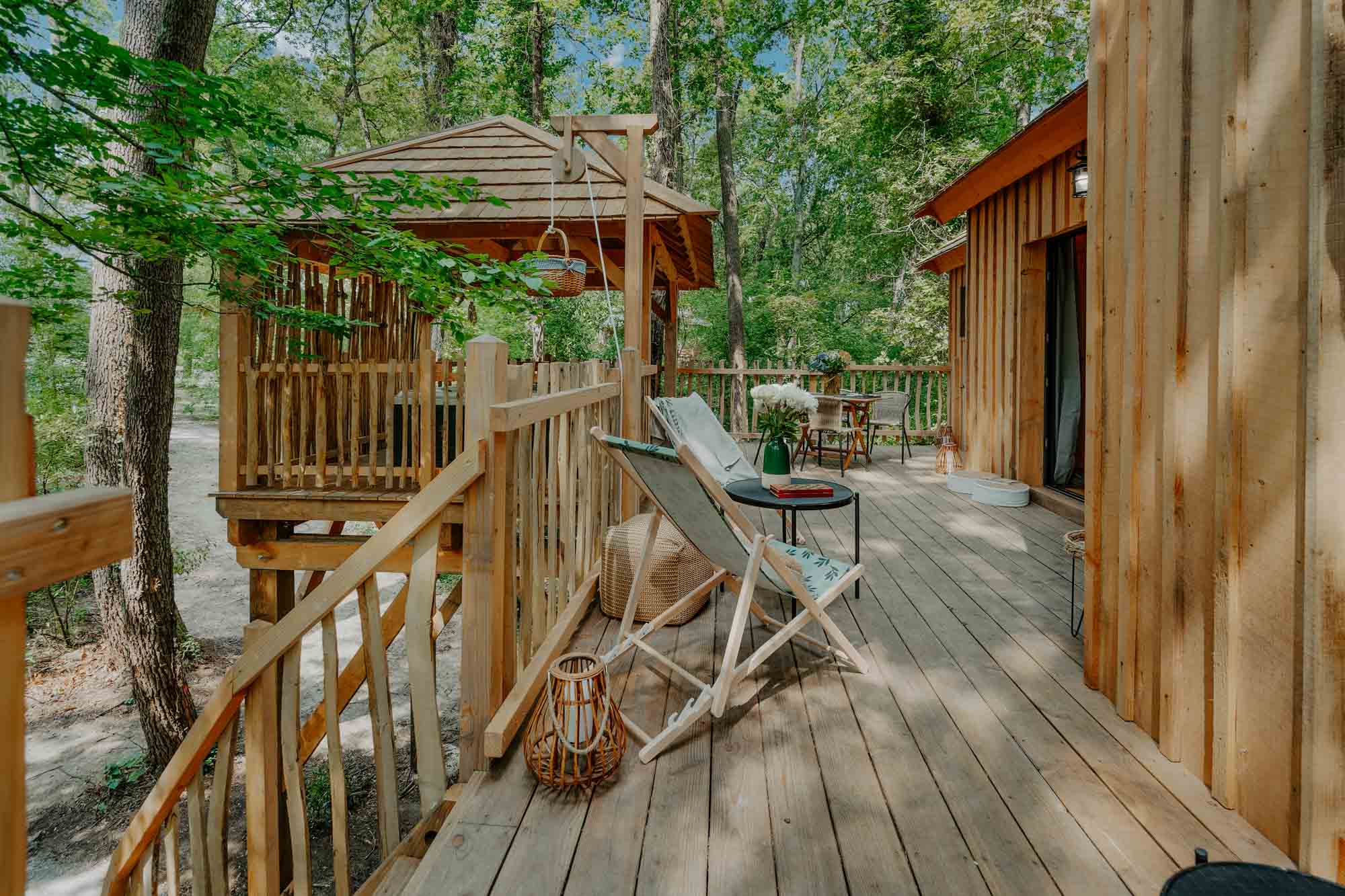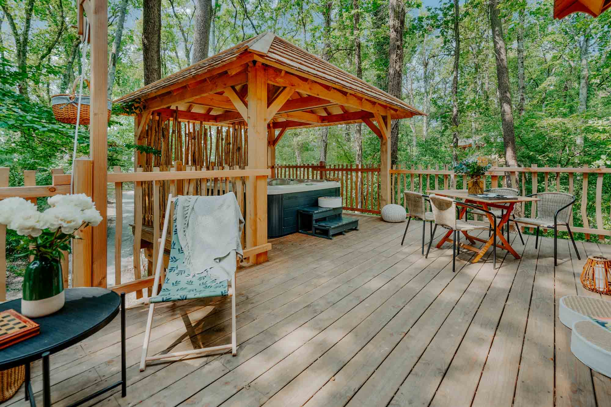 Hidden away in the heart of the forest, you'll discover this treehouse with SPA, ideal for nature lovers, surrounded by majestic trees and lush greenery.