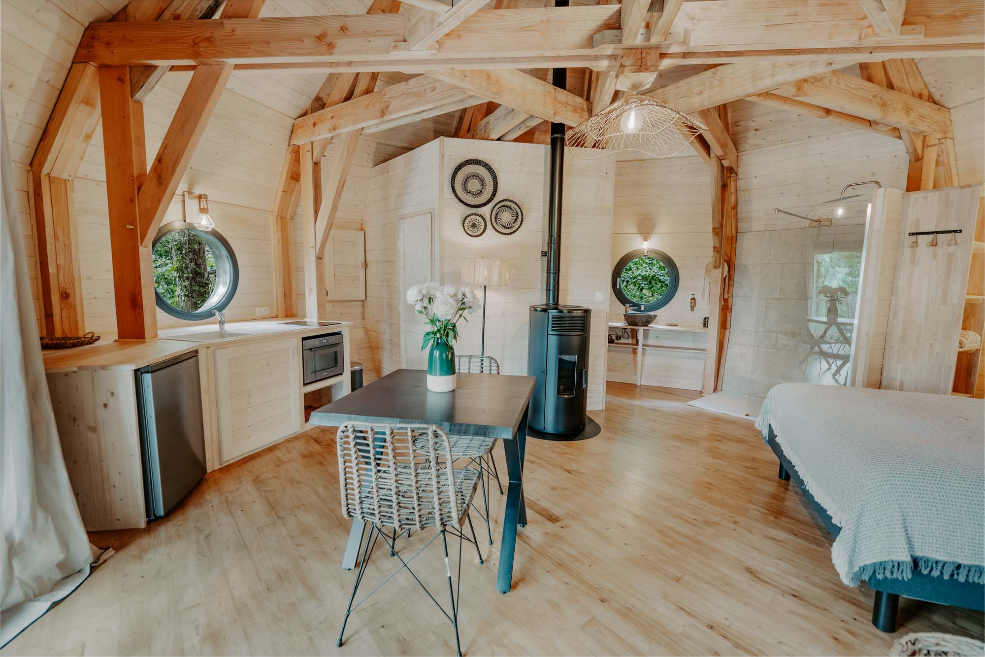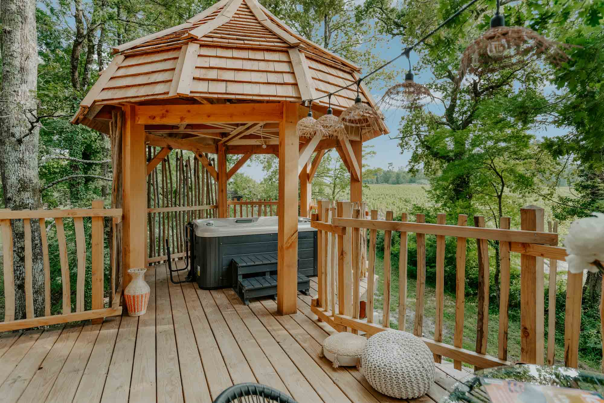 Situated on the edge of the wood and bordering the vines, this comfortable lodge will win you over with its octagonal shape, giving it a unique look and formidable charm.