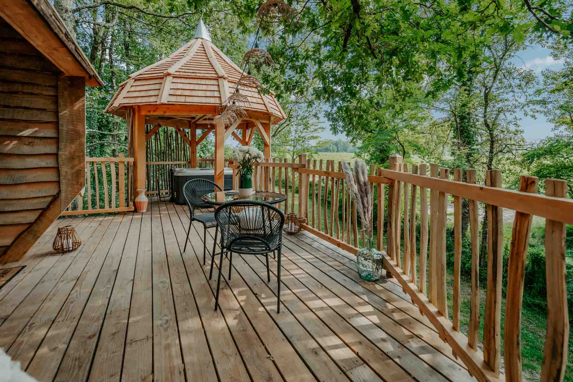 From the top of the 5-metre high lodge, you can enjoy a panoramic view of the magnificent sunsets and admire the wild animals, while enjoying a romantic and unusual moment in the spa with its bubbling waters.
