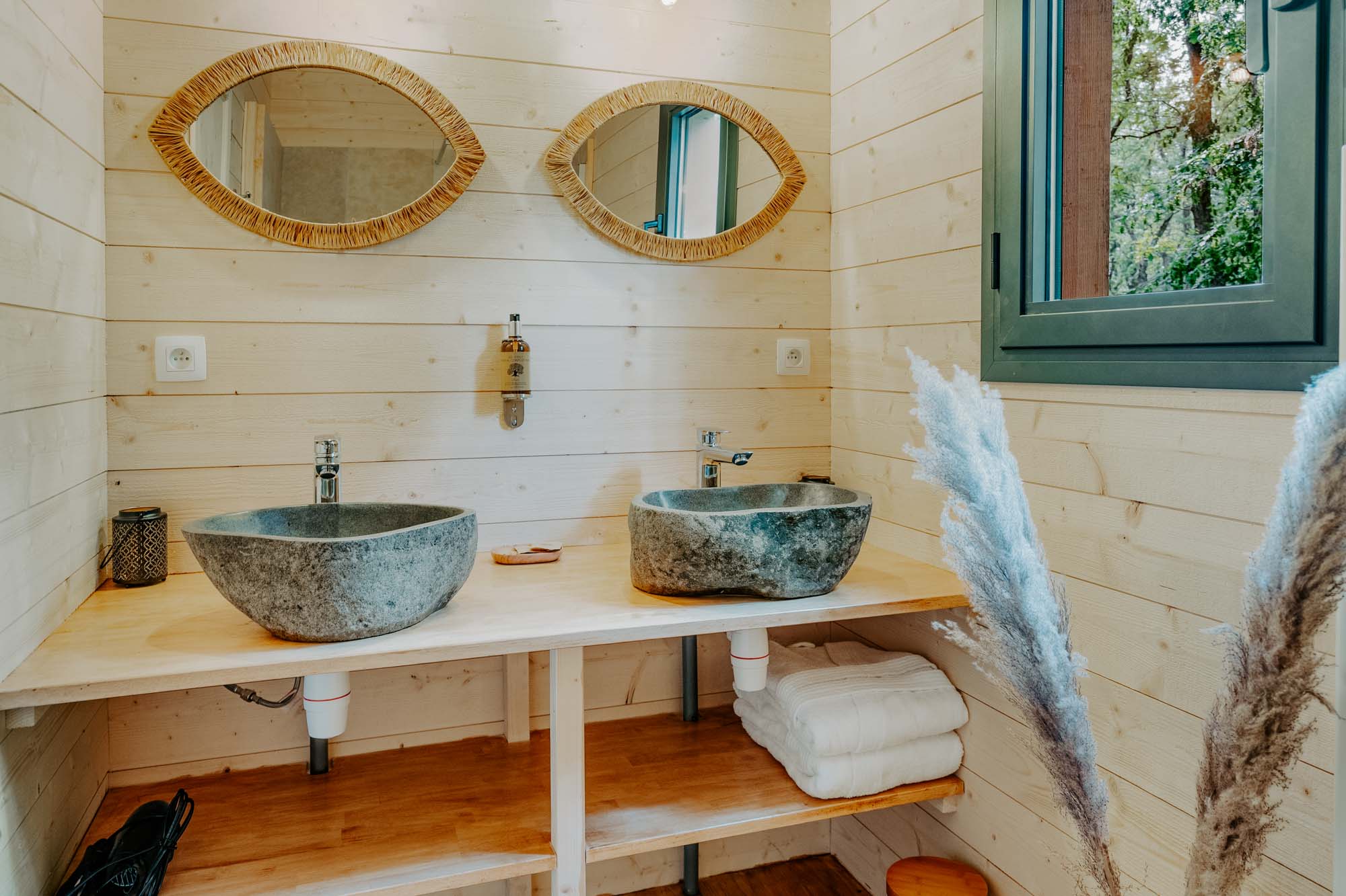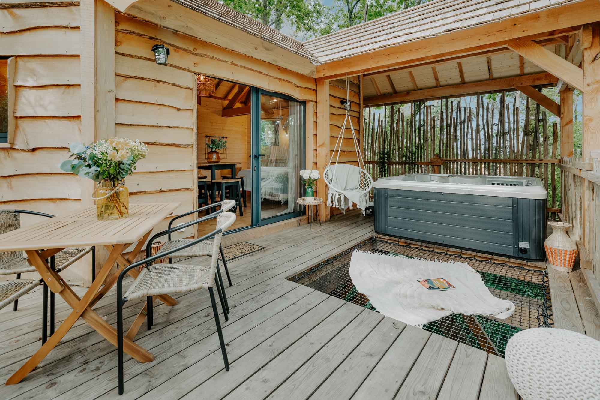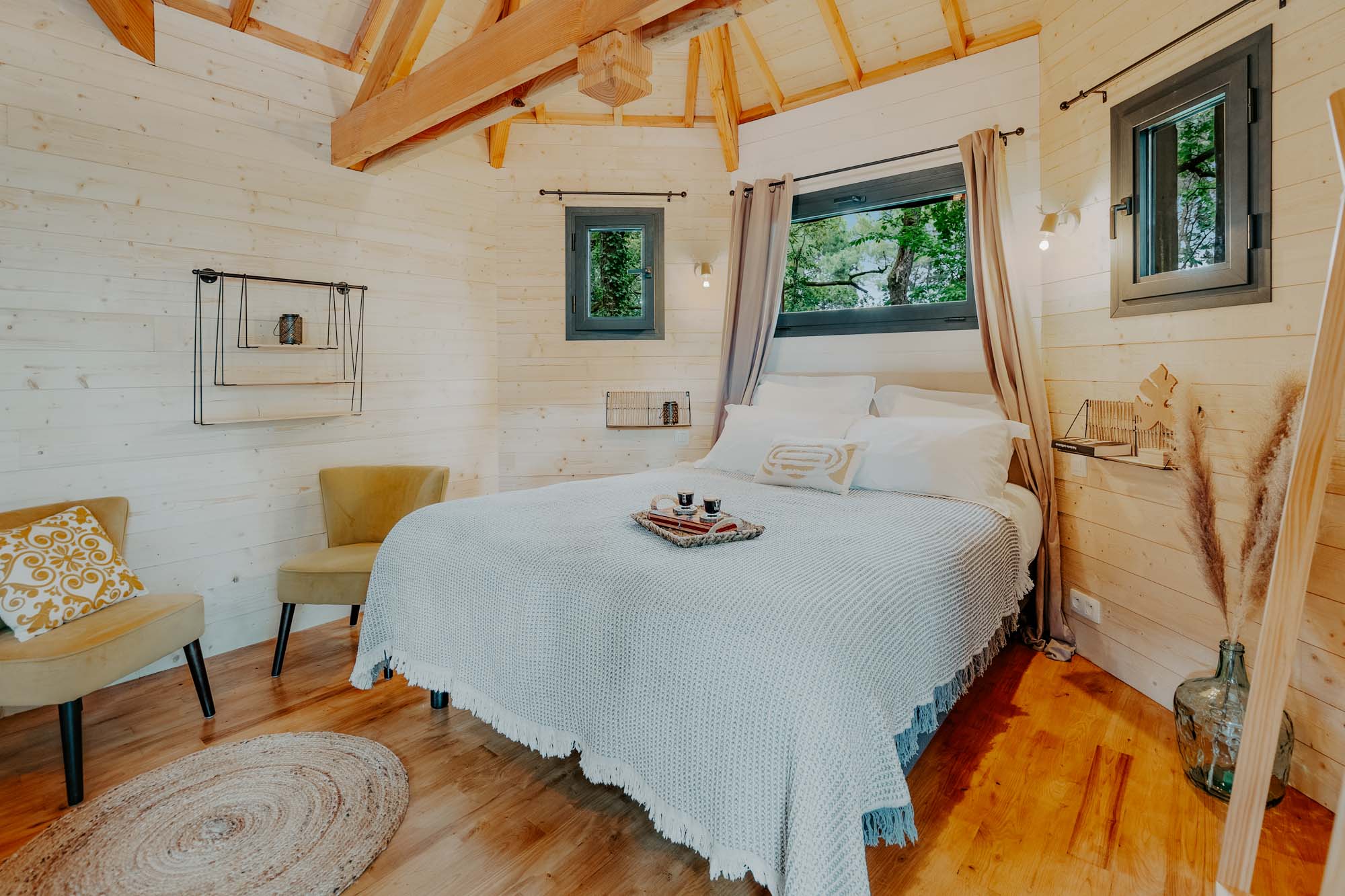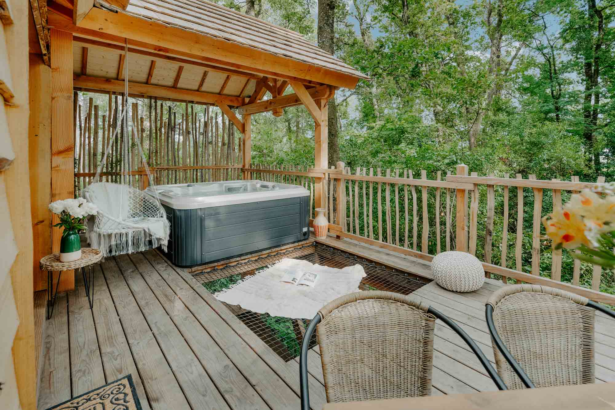 The spiral staircase leads to the terrace, with its unique hammock suspended 5 metres from the ground, where you can escape, watch the birds and contemplate the sky.